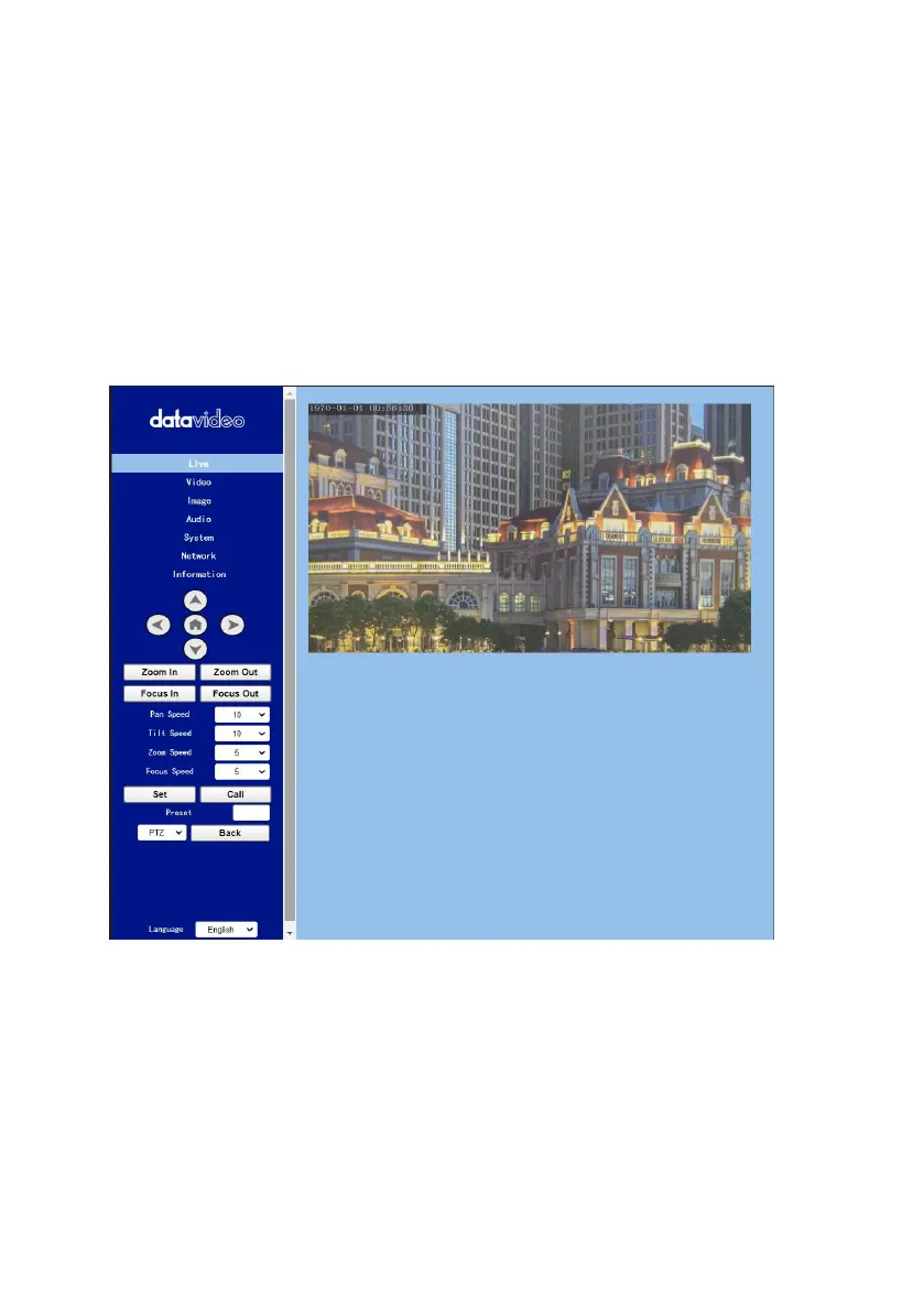 Datavideo PTC-285 - Web User Interface; Live
