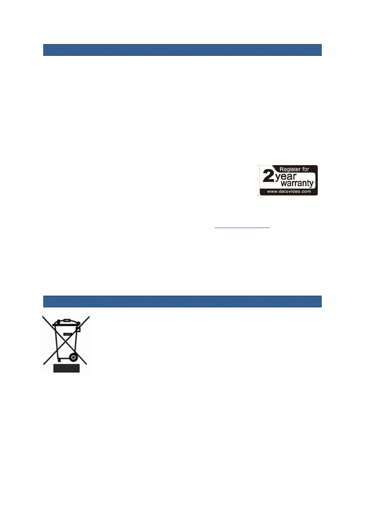 standard Warranty, providing the product is registered with Datavideo within 30 days of