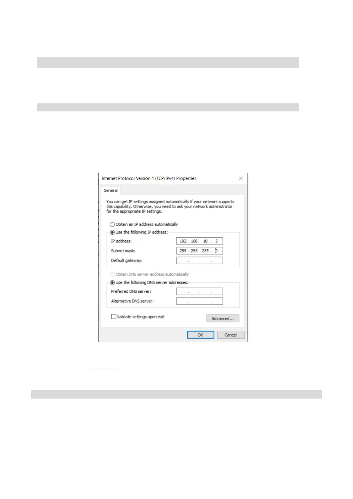 4. Turn on the Windows computer and set it to static IP set up within the Windows Network and