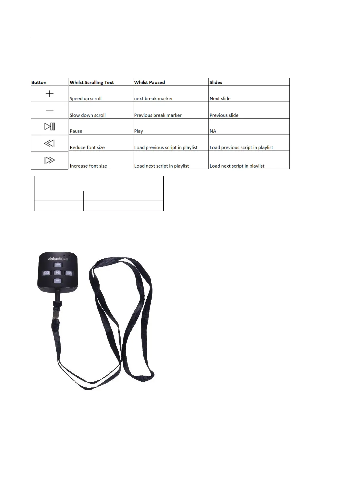 Datavideo TP-900 - Control Buttons; Remote Accessories; Lanyard Necklace