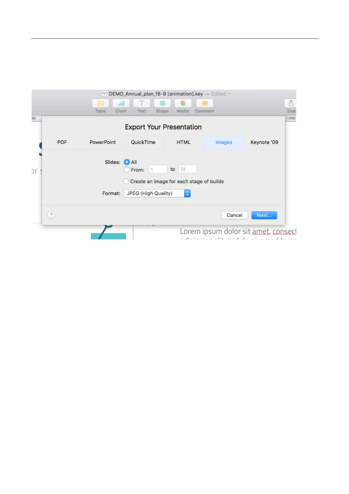 Exporting slides from Keynote