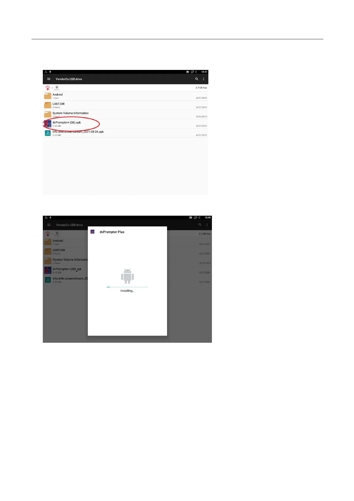7. Double click the dvPrompter Plus .apk file you downloaded earlier