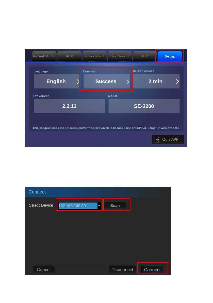 6. Please click the “Scan” button to find the connected SE-3200. Please select