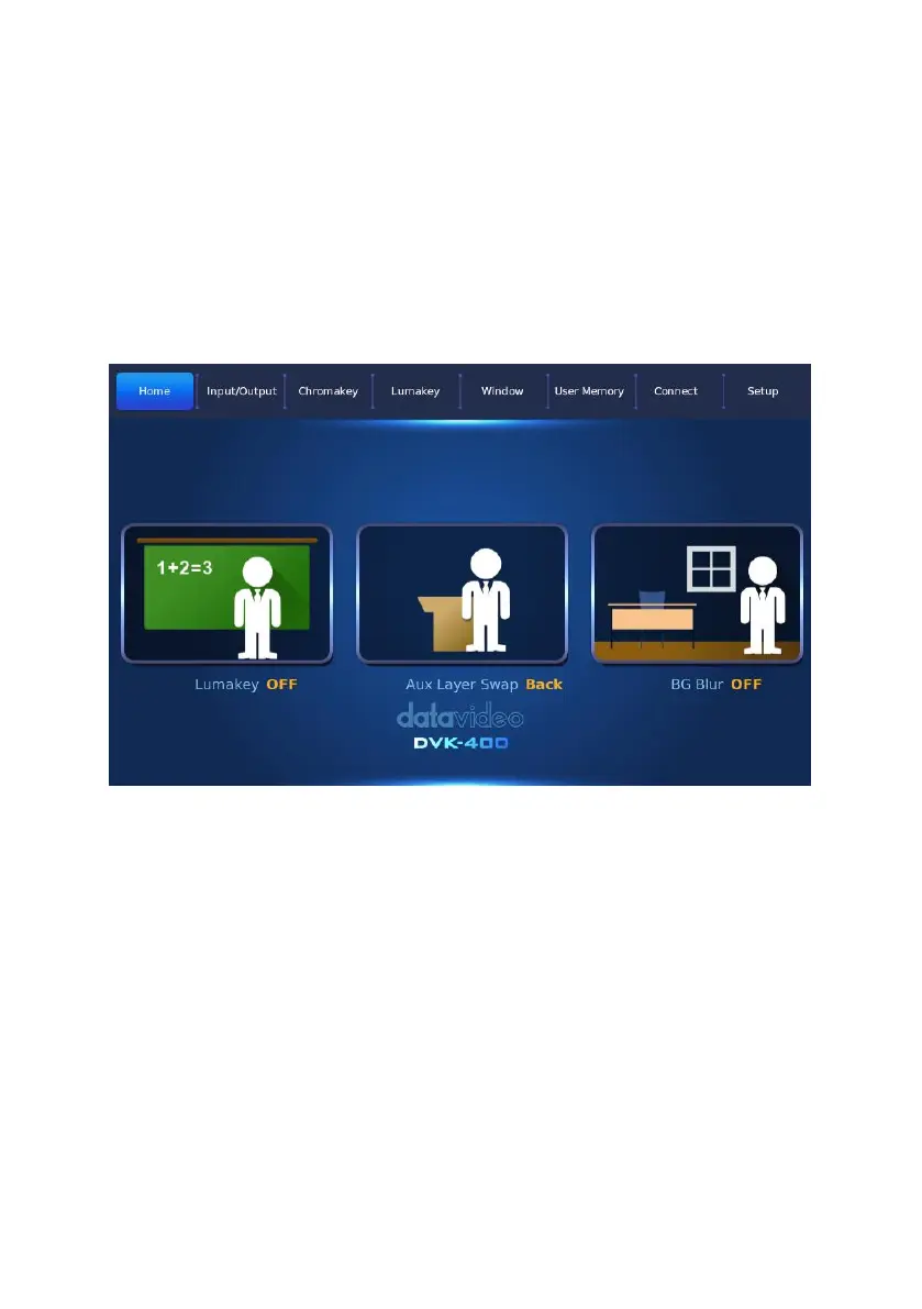The Datavideo TPC-700/TPC-700P built-in DVK-400 app includes “Home”,