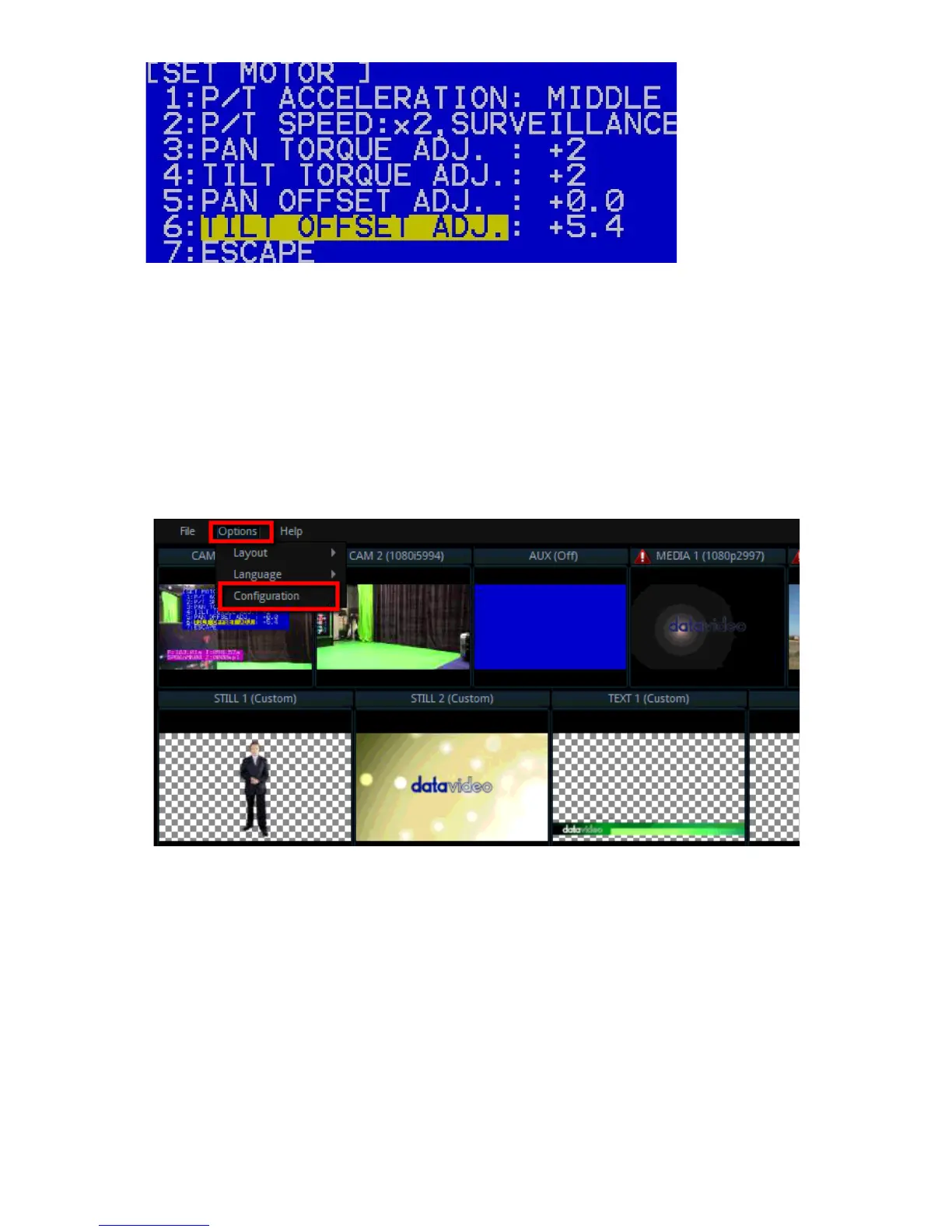 2000A Configuration Window / Tracking tab / CAM 1 (SDI IN 1) / Camera Port: CAM CTRL 1 /