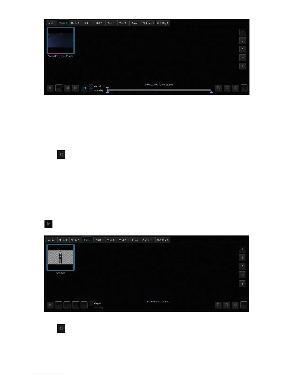 To perform slideshow of still pictures, enable the “PlayAll” function and then click the Play