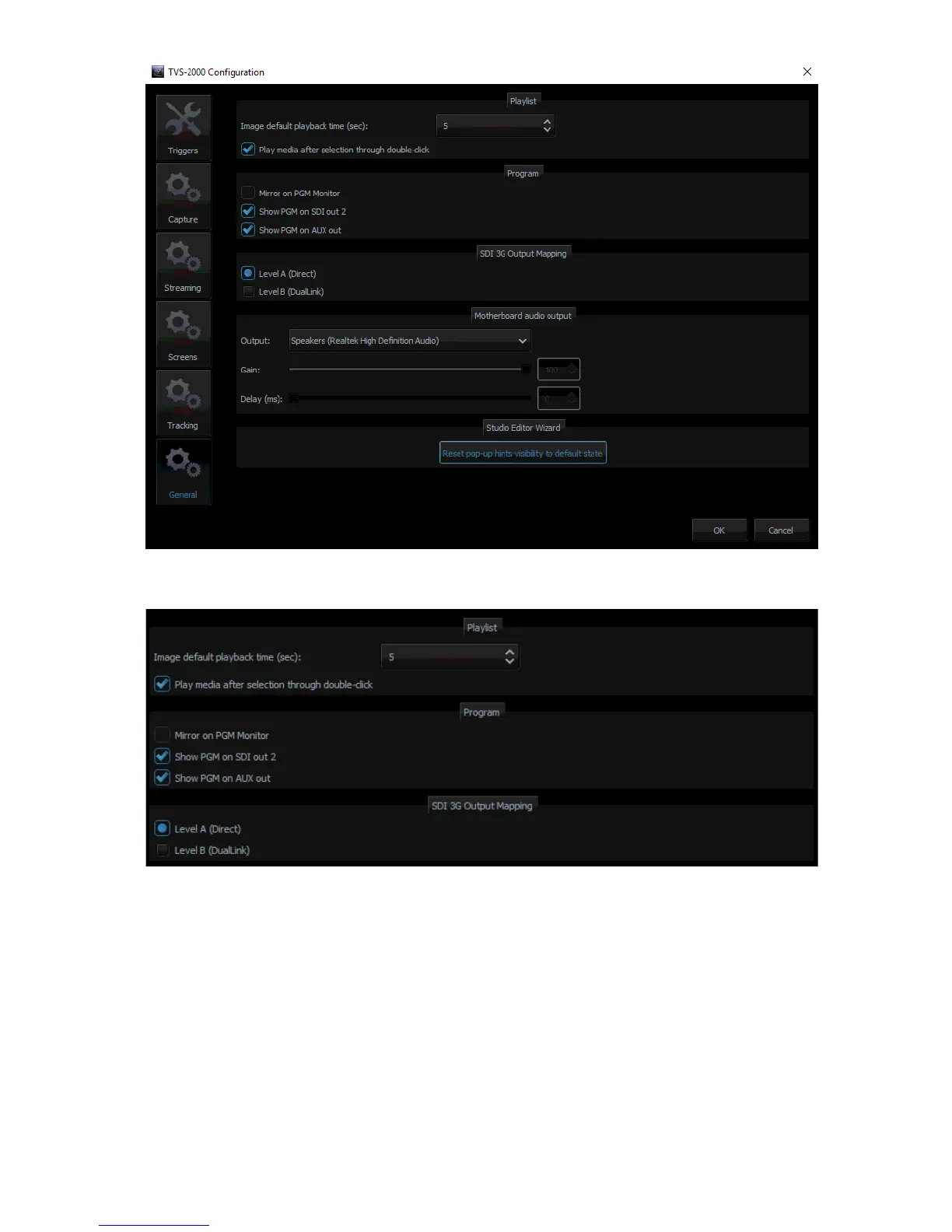 In addition, the TVS-1200A is able to output PGM audio on the selected sound card. To hear