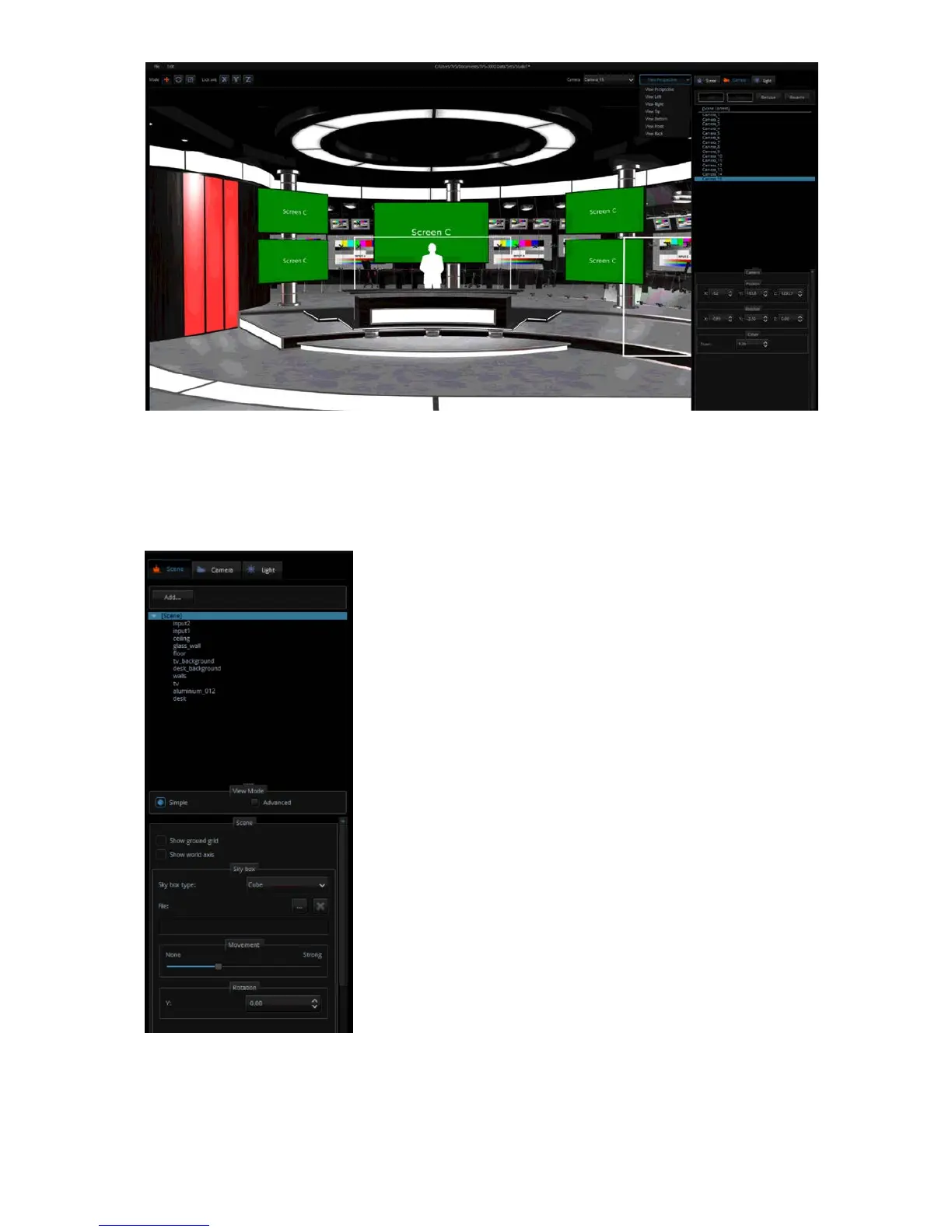 The three major options are “Scene”, “Camera” and “Light.” In these options, the user will be