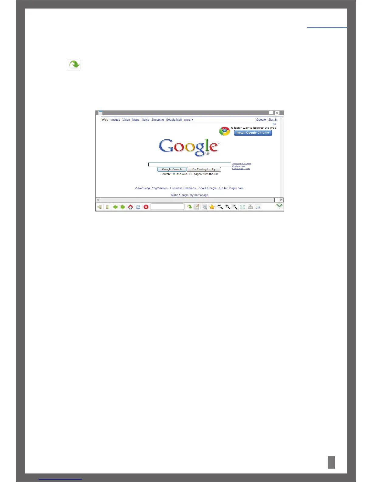 For example to go to the Google web page type “www.google.co.uk”. The Google homepage will appear on the screen as shown.