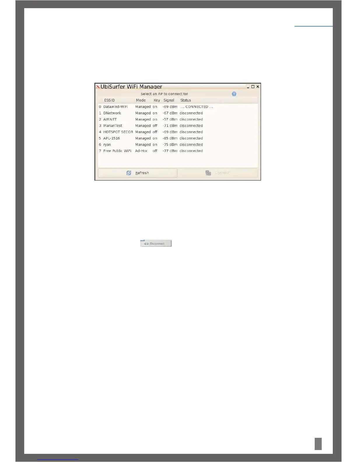 To disconnect from the WiFi connection, click the Disconnect Button.