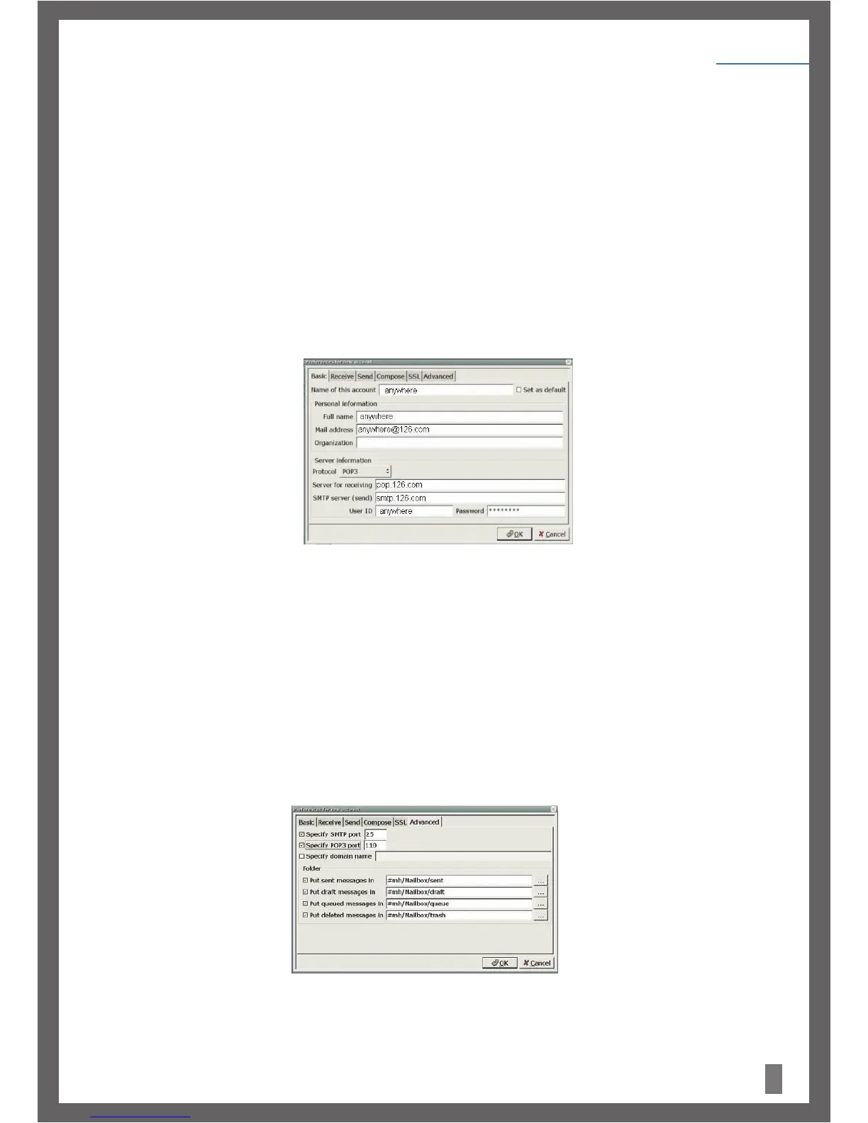 The Receive, Send, Compose, SSL and Advanced tabs in Email Box contain other settings which affect the way your e-mail will be set up