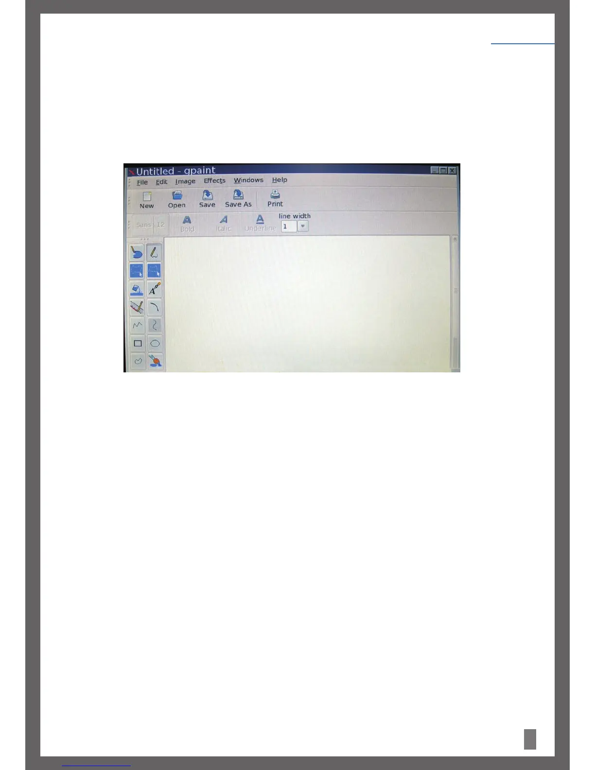 GPaint is a drawing tool to allow the user to create simple or elaborate images. These images can be saved in .JPG and .PNG forms.