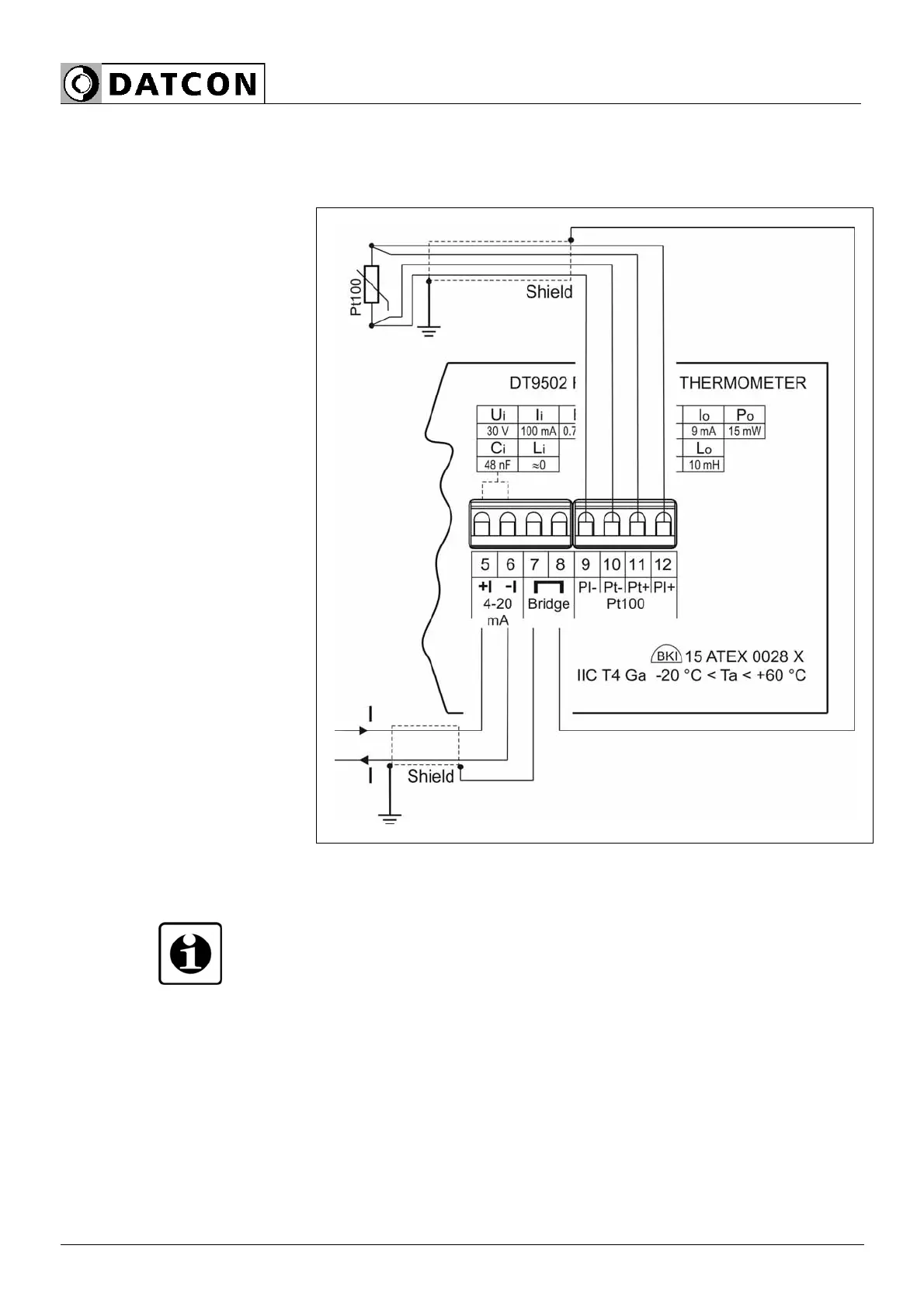• The shieldings of the cables connected to Pt100 and to