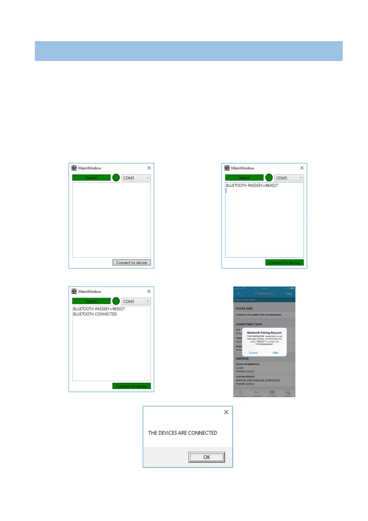 special app return message “THE DEVICES ARE CONNECTED” (Fig.7 when on both device is confirming