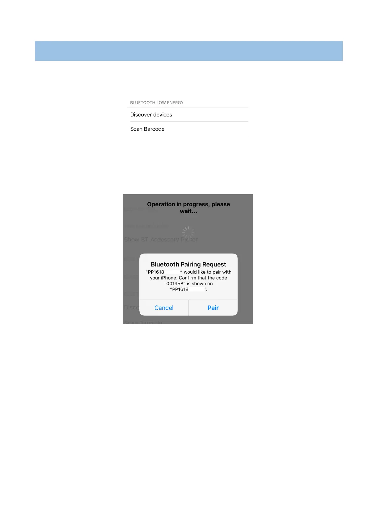 4. Then of the screens on both devices will be showed the “Pairing Request”.