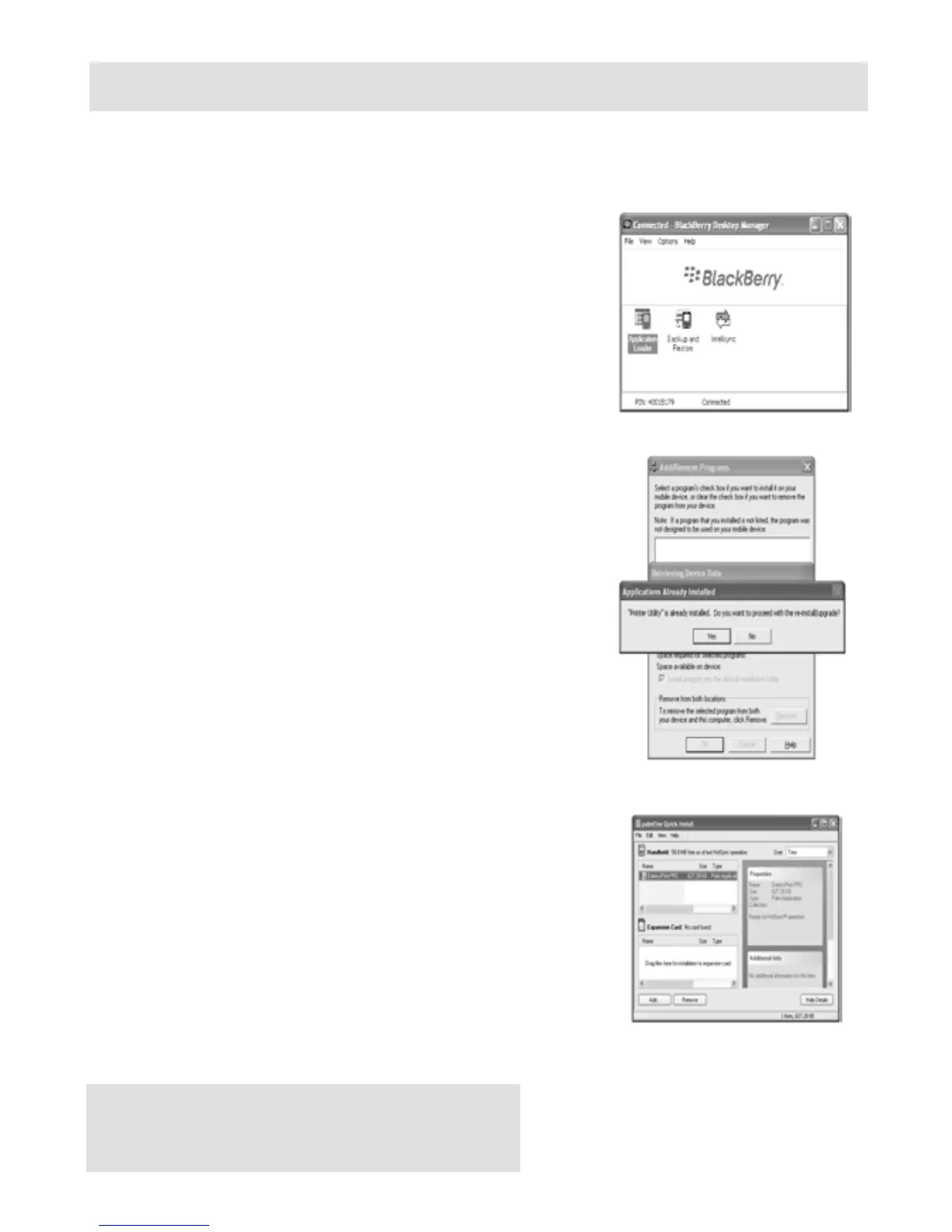 Blackberry Desktop Manager shown in the