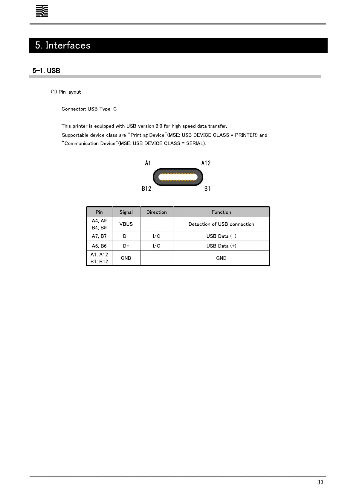 Datecs WPP-250 - 5. Interfaces; 5-1. USB