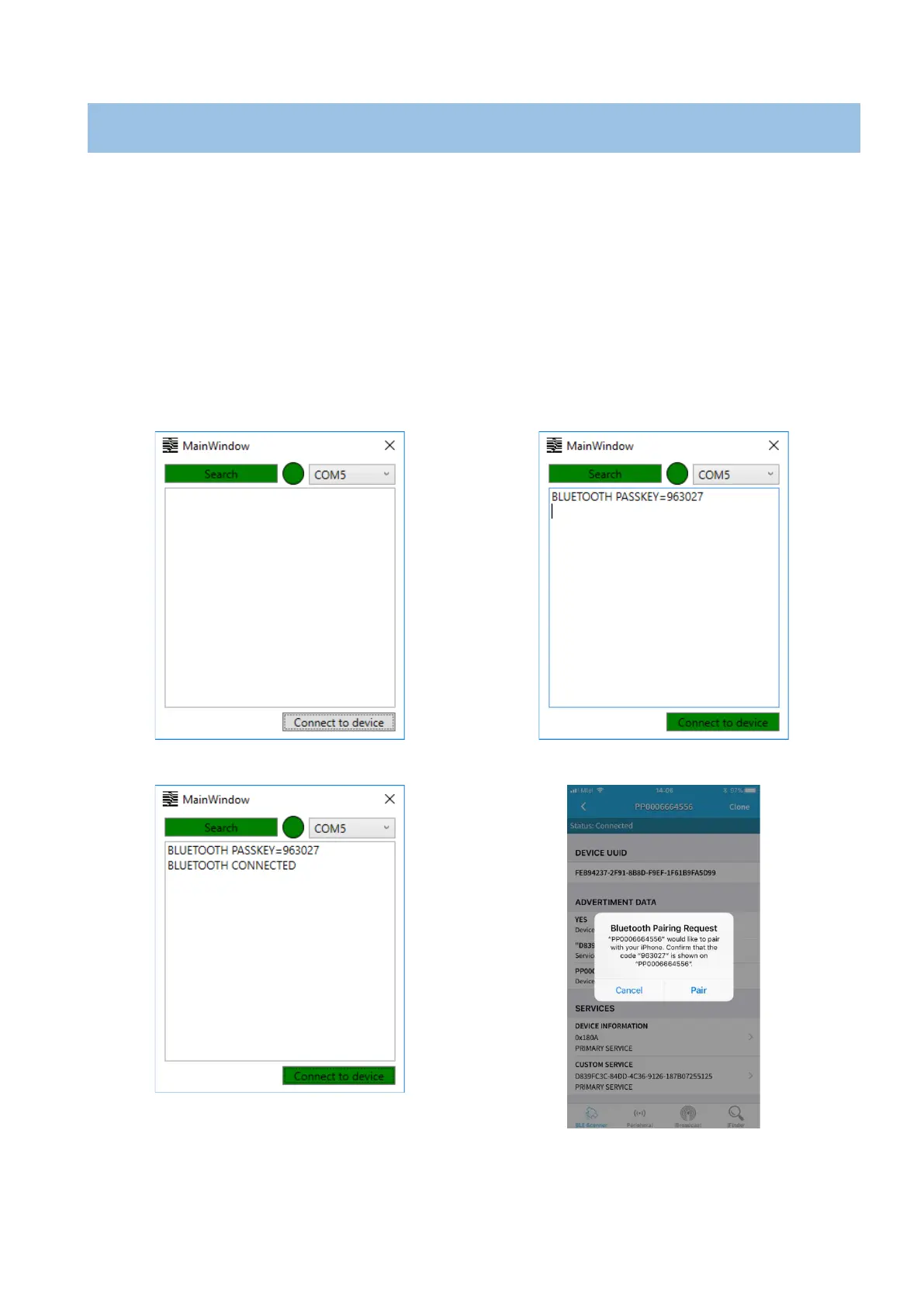 COM ports. Select on which is connected device, then press “Connect to device”. From Bluetooth