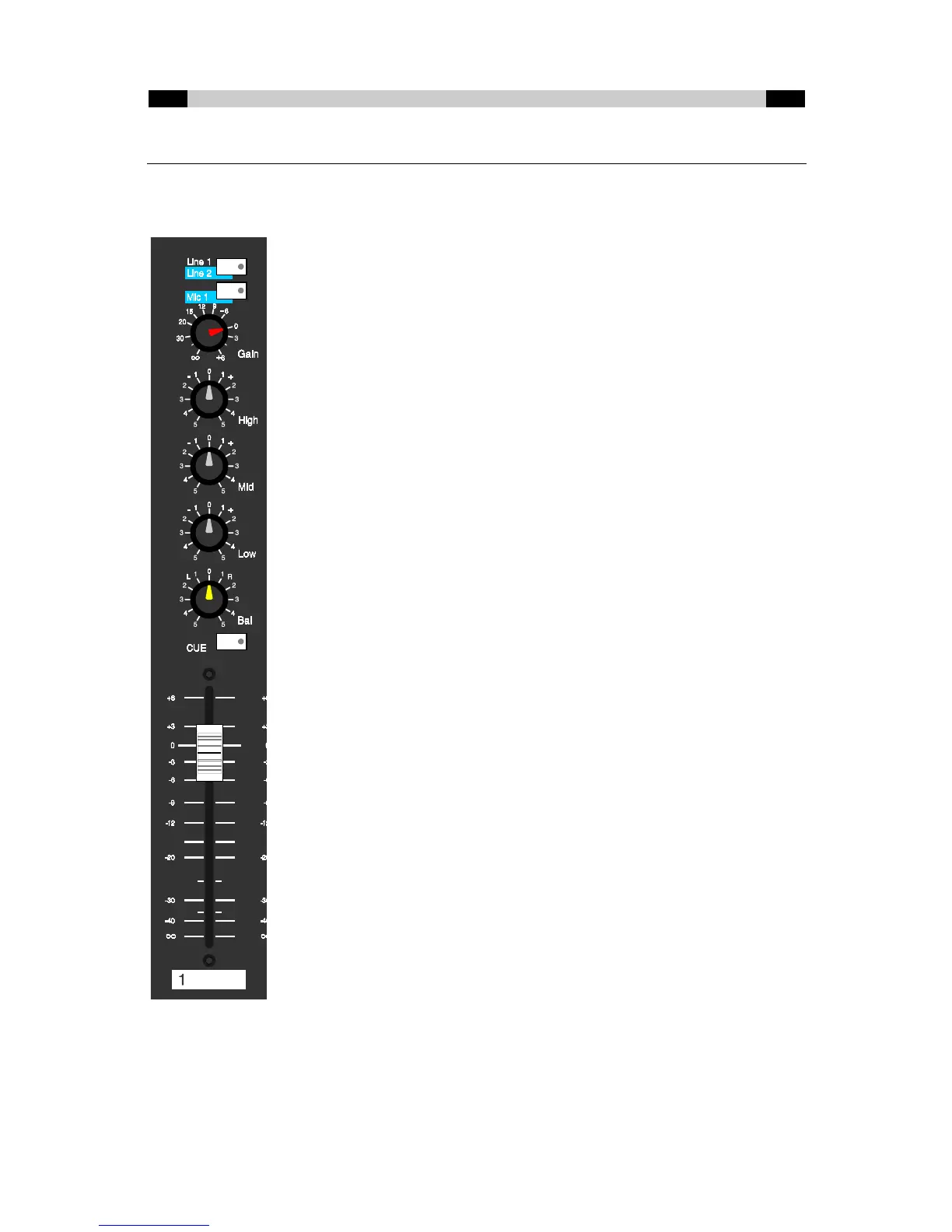 Gain control, 3-way tone control, balance and pre-fader listening.