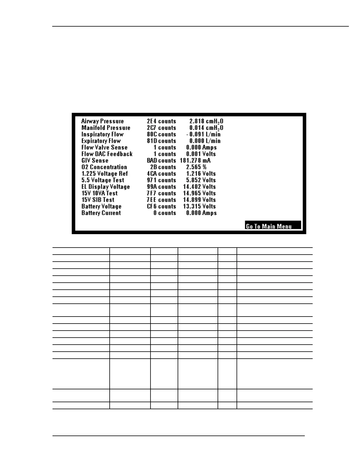 INSPIRATORY FLOW -3.5 to +3.5 cmH2O 0726-0924 3.66-4.68 cmH2O Zero Offset Reading (nominal 2050 LSB)