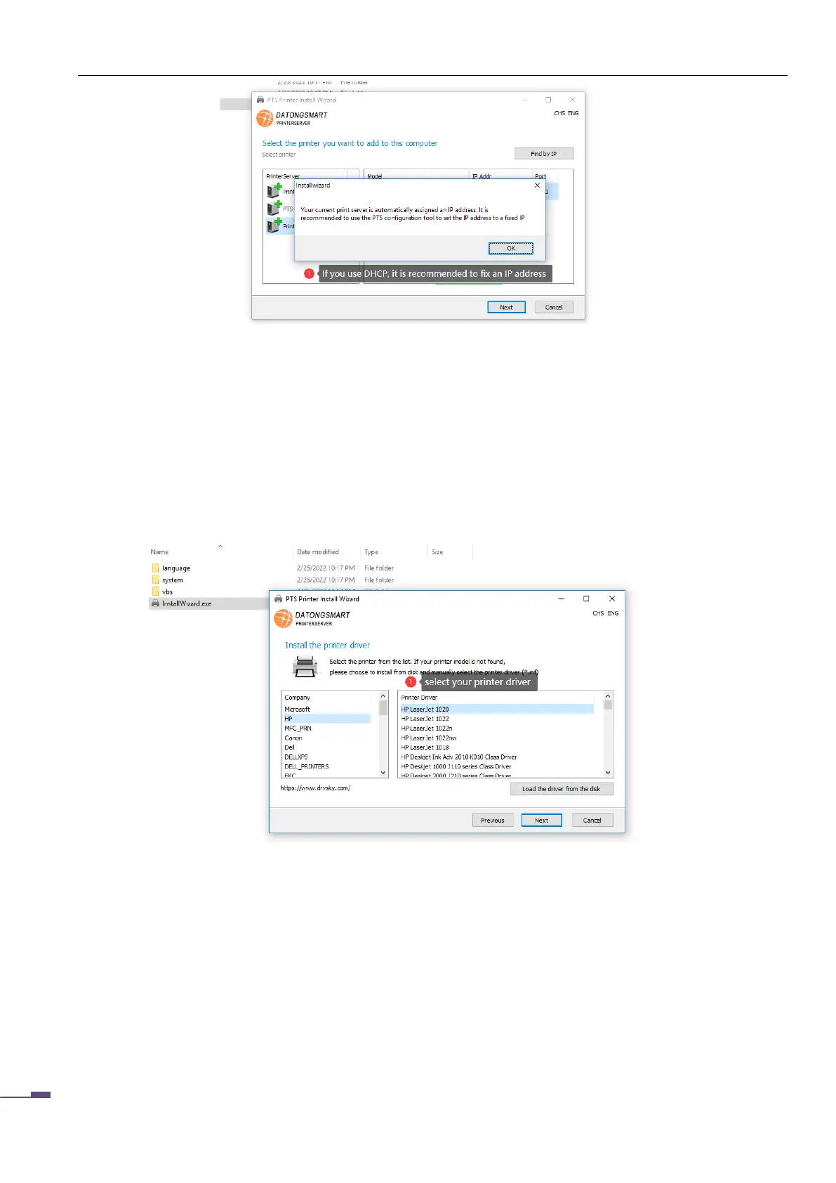 corresponding printer type that cannot be found in the list, the user can specify the driver file in the disk,