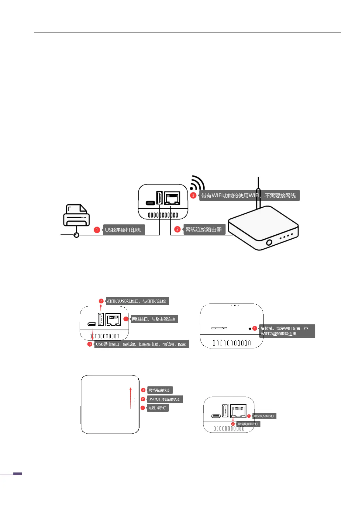 The print server mainly provides network printing support for USB printers. Computers and mobile