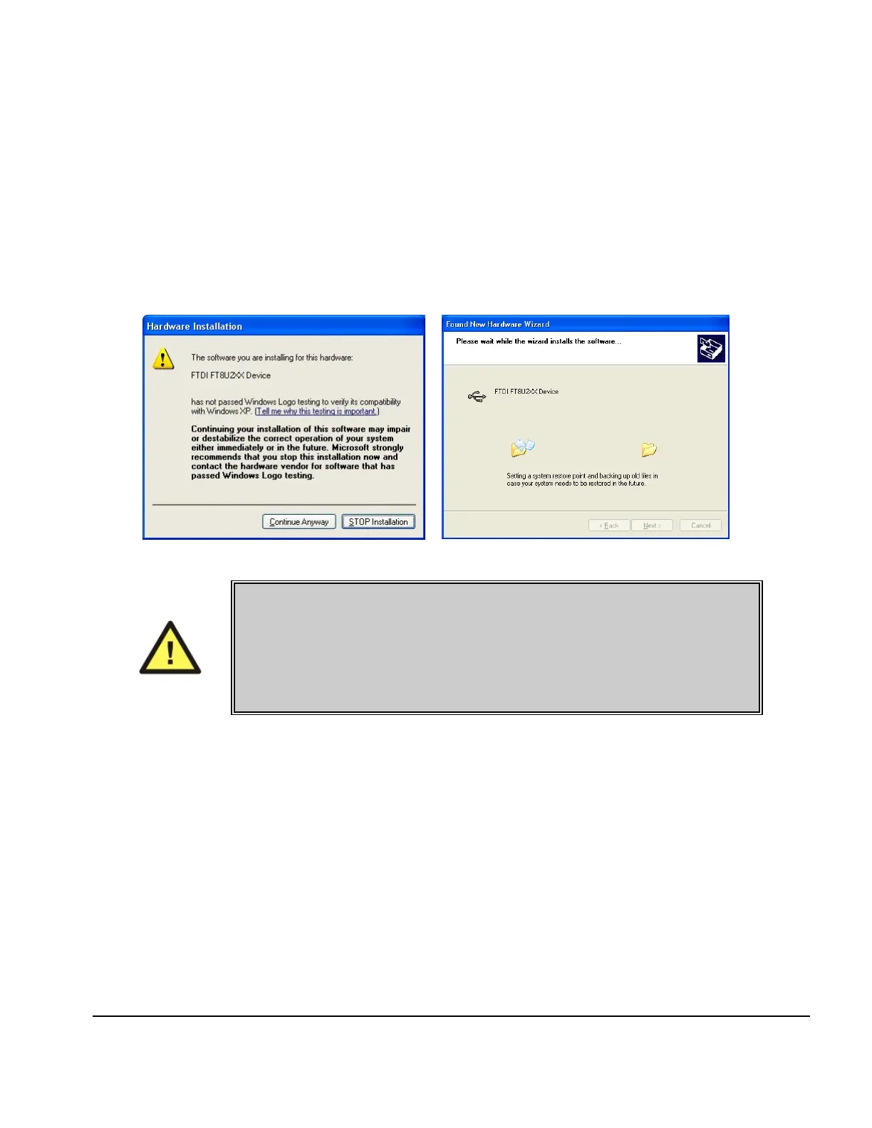 During installation of the USB drivers, Windows XP users may receive a