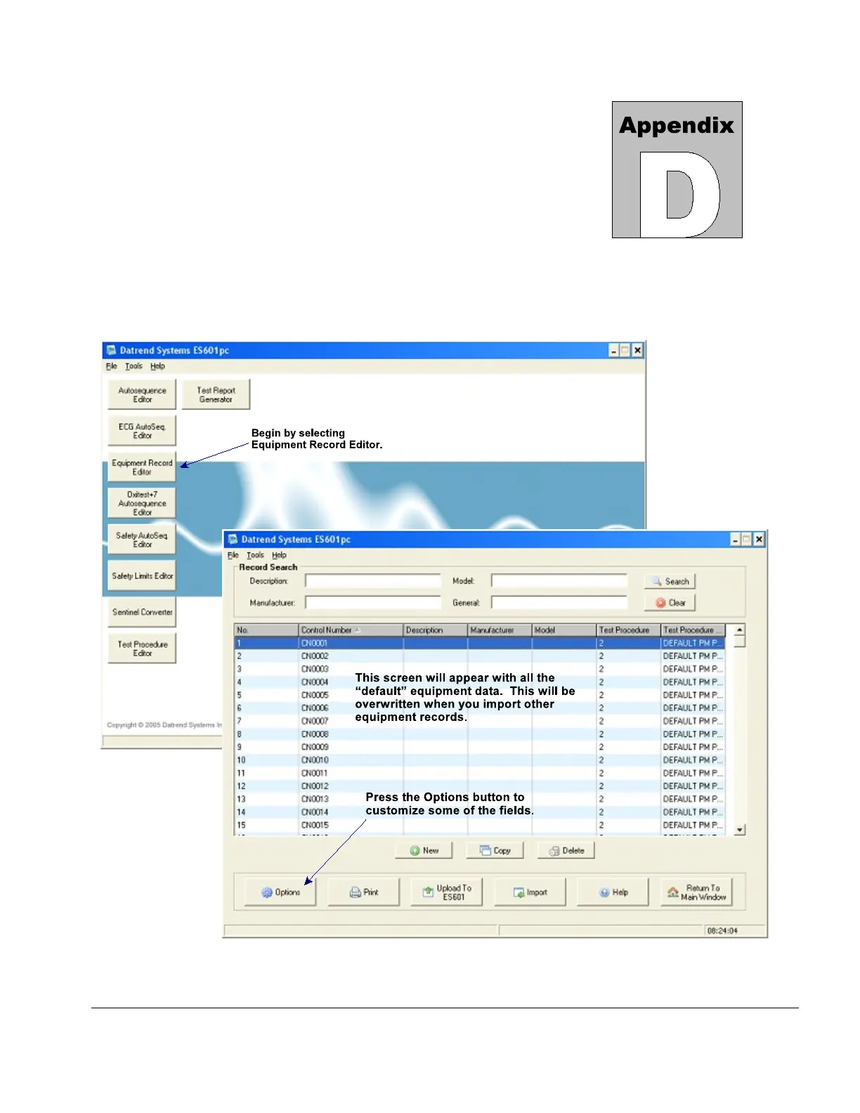DATREND Systems ES601 Plus - Appendix D. Importing Equipment Records