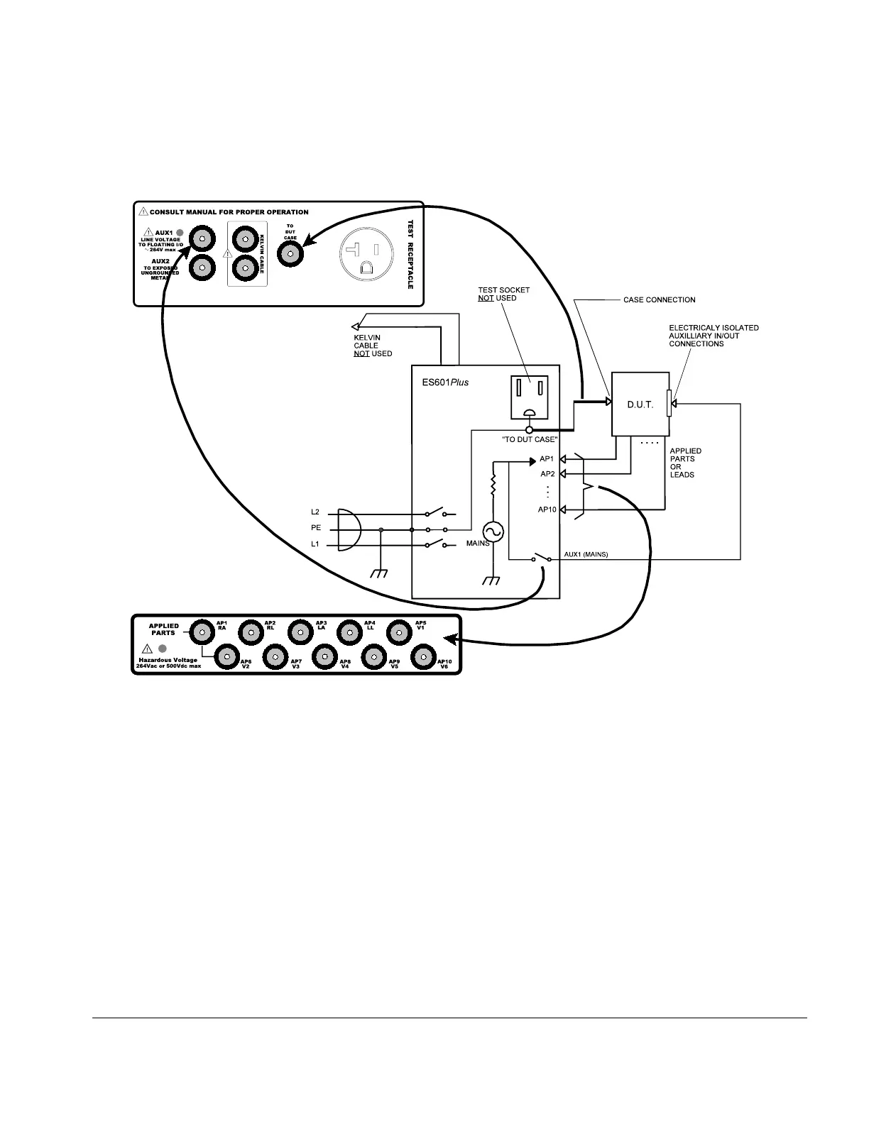 The “TO DUT CASE” jack of ES601Plus connects to the enclosure of the DUT, or alternatively, to