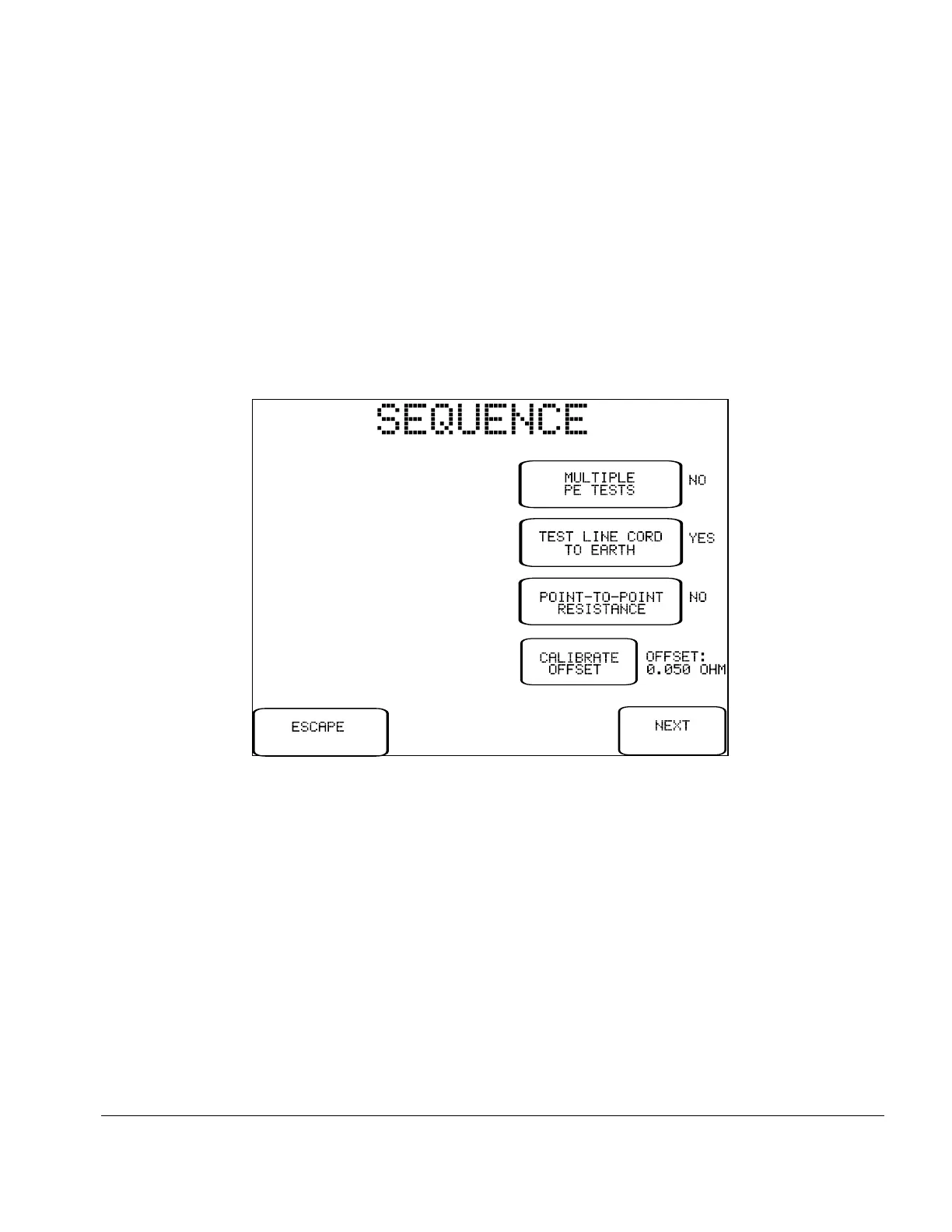 Upon selecting this test from the menu, ES601Plus will recall the Systems Settings for the manual