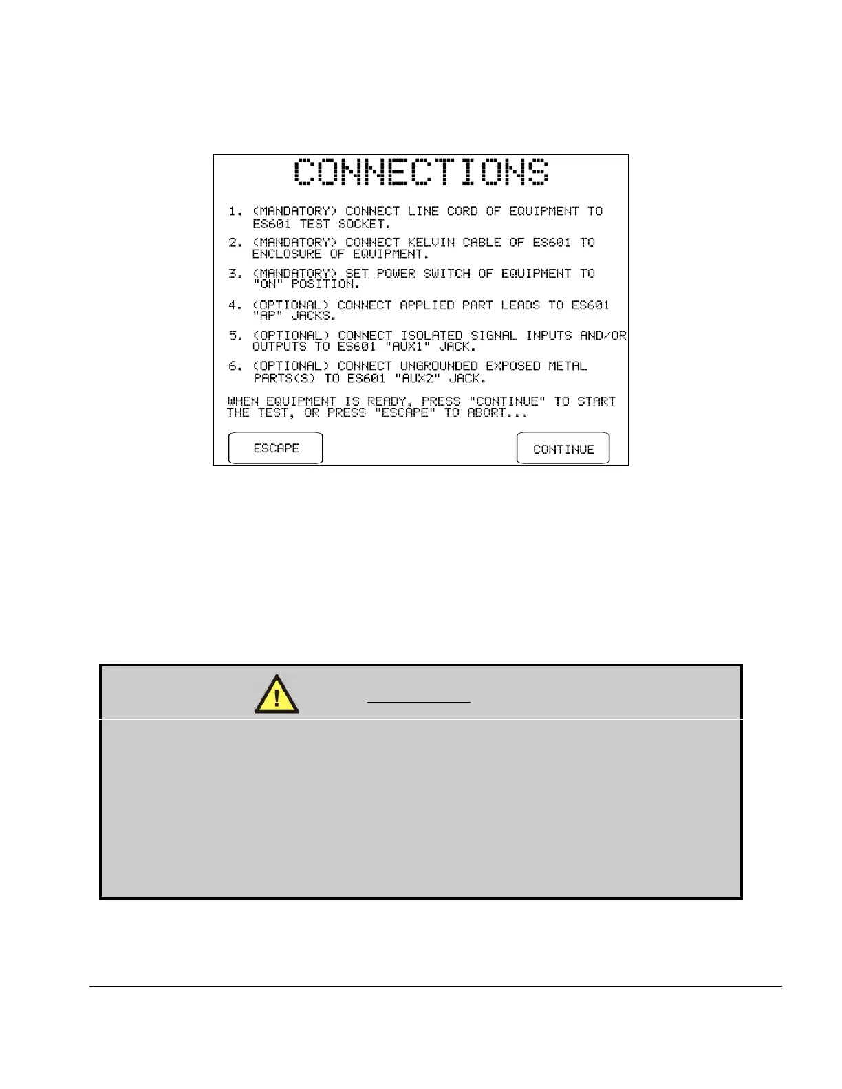 According to the CONNECTIONS menu, at minimum an IEC60601 test will require the user to