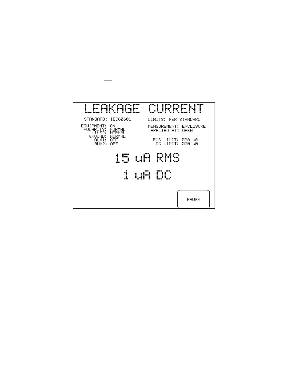 either "PASSED" or "FAILED" automatically by ES601Plus. The PAUSE button may be pressed