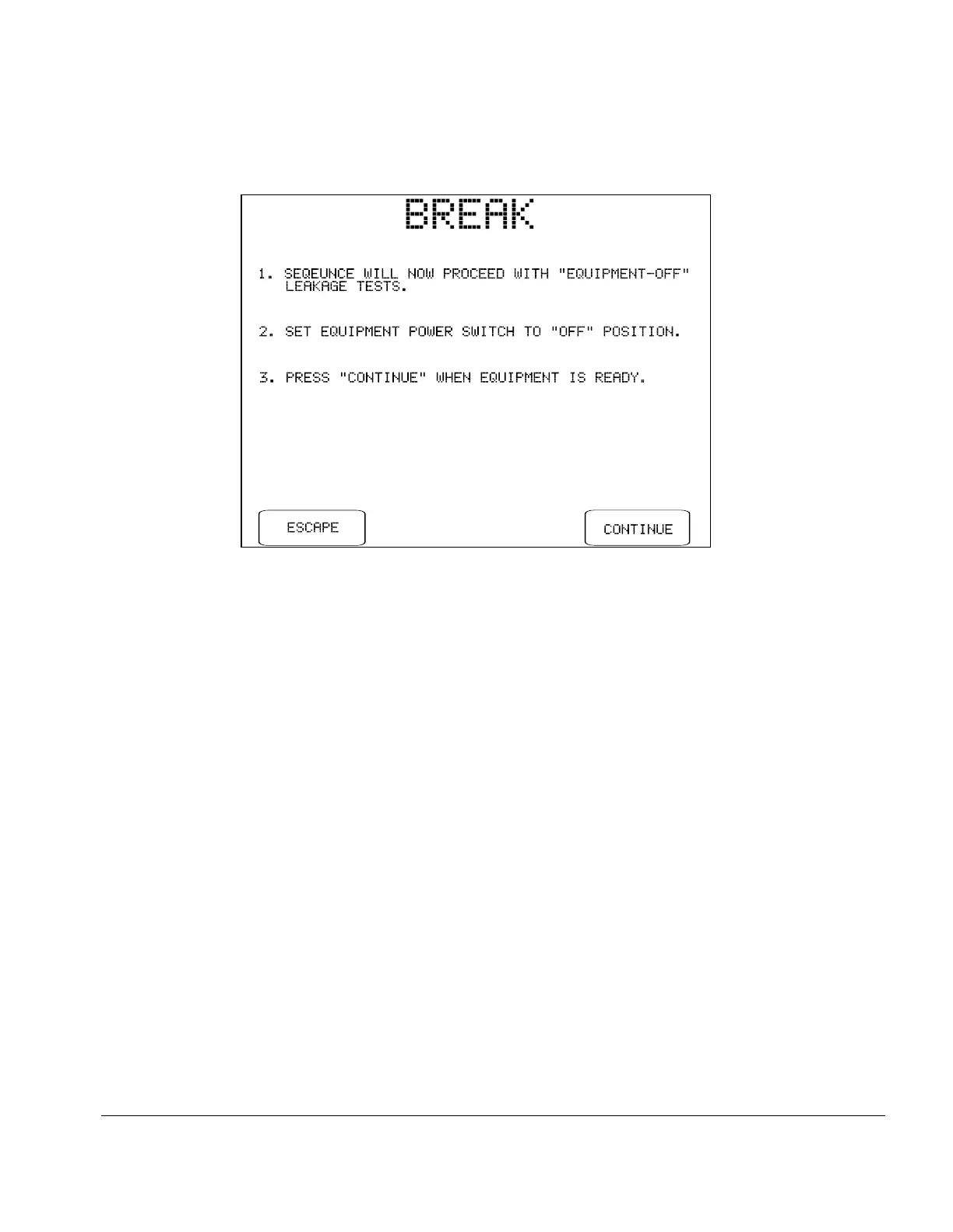Upon pressing CONTINUE on the above menu, ES601Plus repeats all leakage tests that were