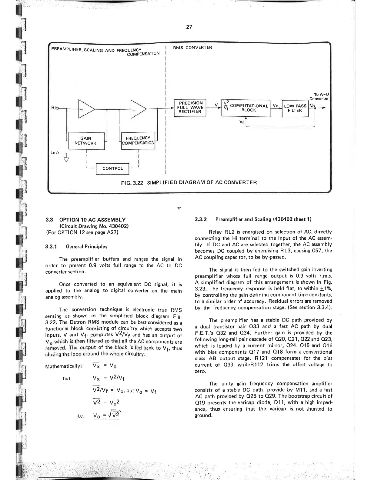 Datron 1061 - Generalprinciples; Option 10 Ac Assembly; Preamplifier and Scaling