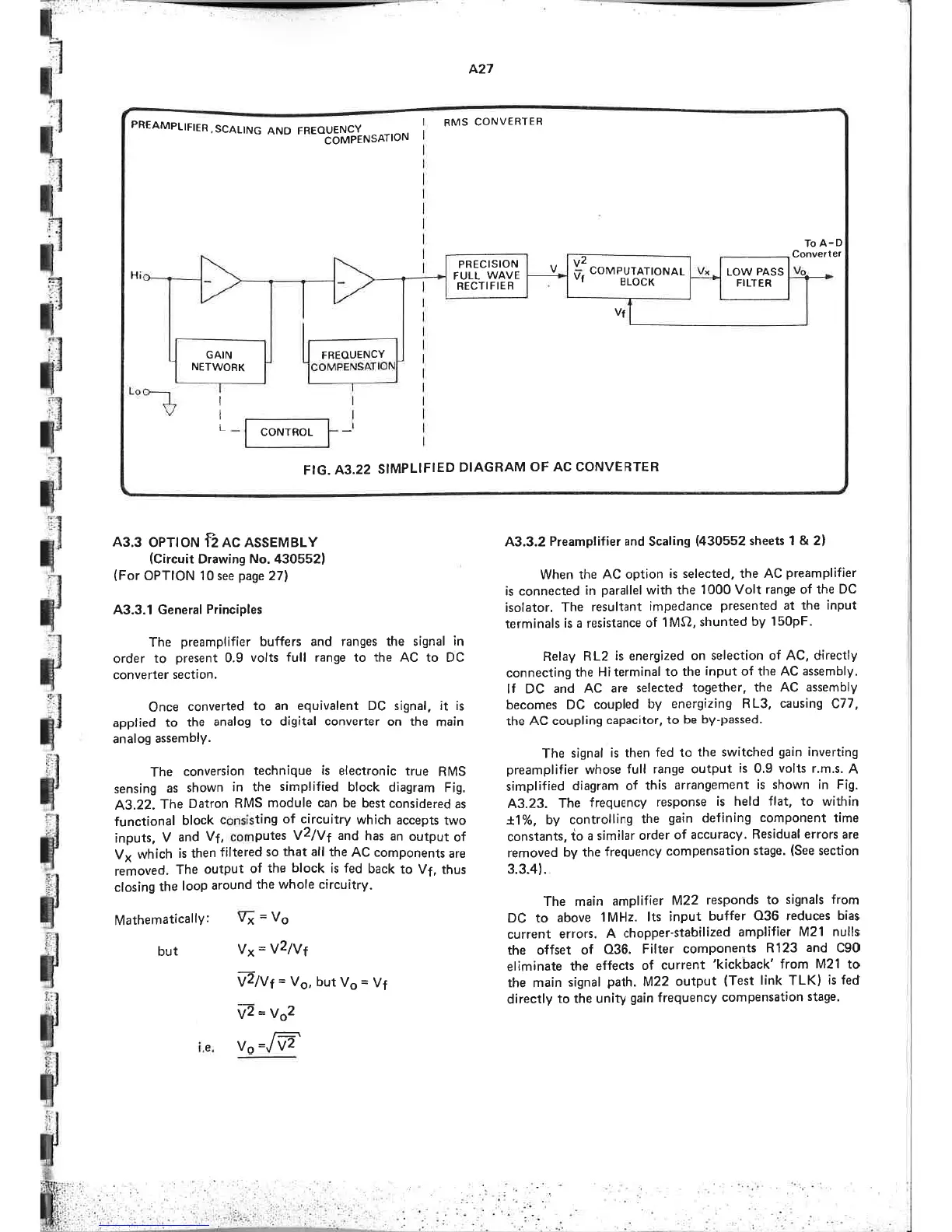 Datron 1061 - Option 12 Ac Assembly; Generalprinciples; Preamplifier and Scaling A27