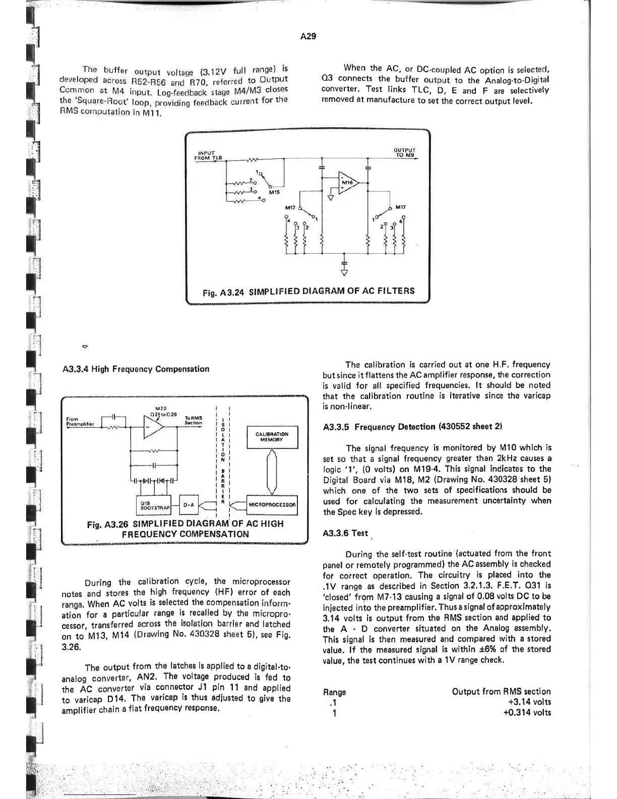 Datron 1061 - A3.3.4 High Frequency Compensation; A3.3.5 Frequency Detection A29; Test