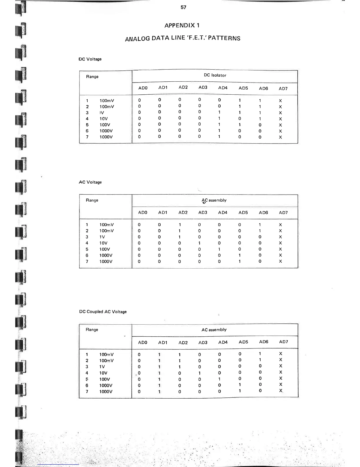 Datron 1061 - AC Assembly; Appendix; Analog Data Line F.e.t.patterns
