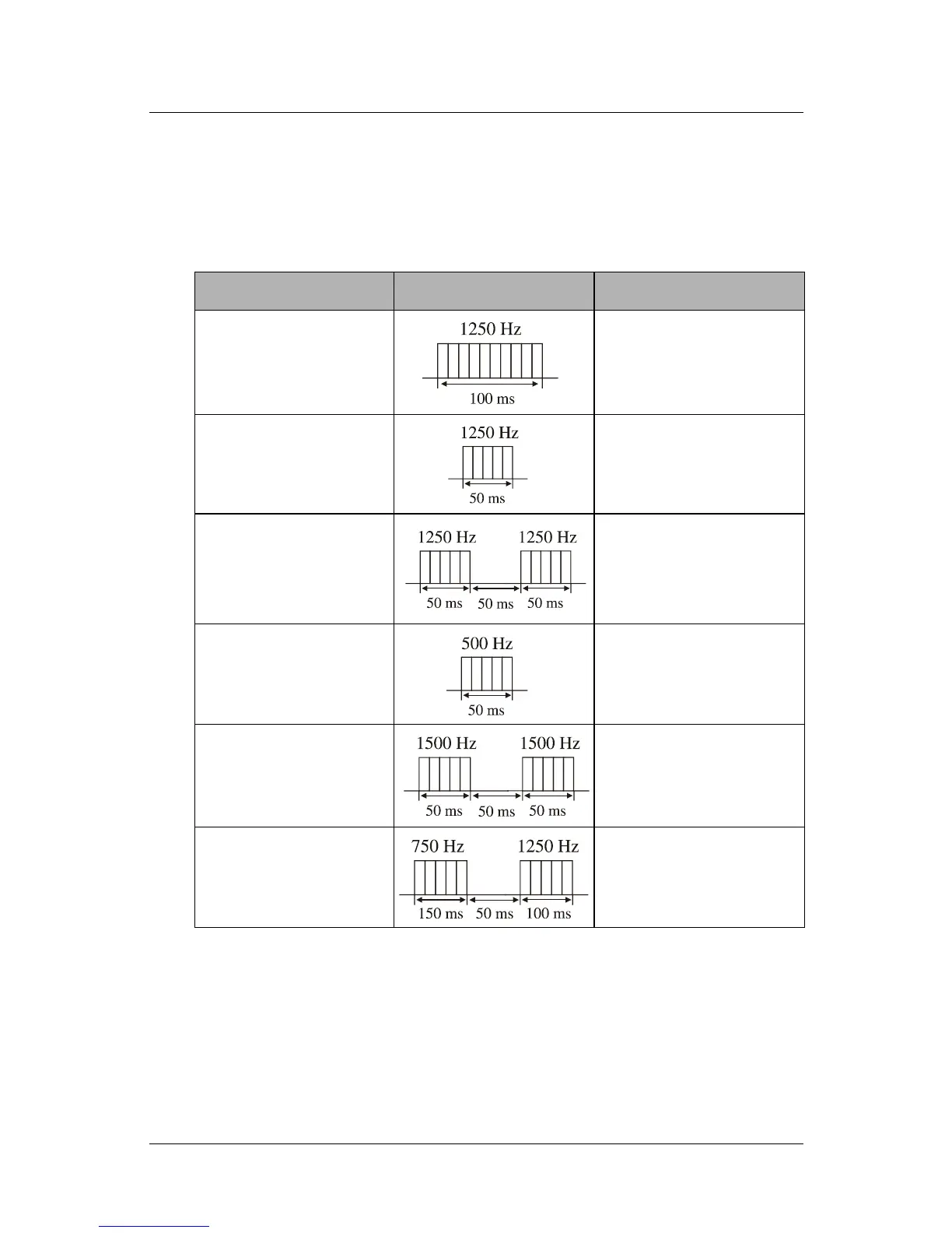 Refer to this table to ascertain the high or low pitched (tone) frequency