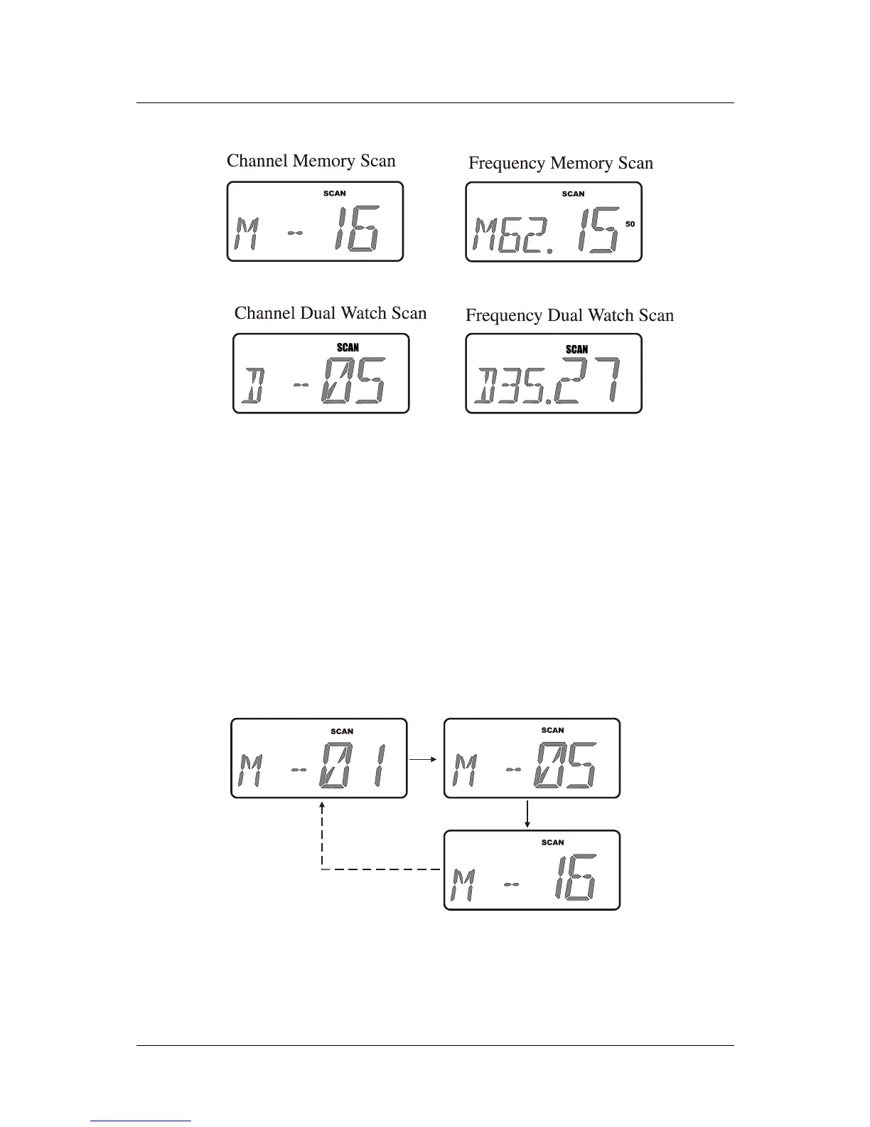 The radio scans the memory list in a continuous loop at a speed