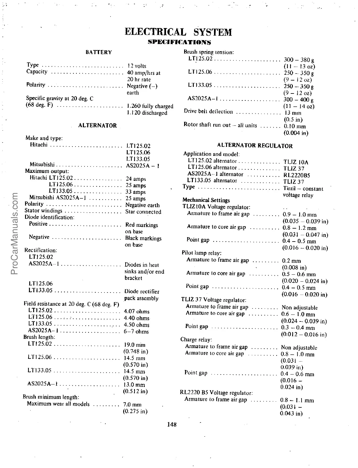 Datsun 1200 - ELECTRICAL SYSTEM; ELECTRICAL SYSTEM SPECIFICATIONS