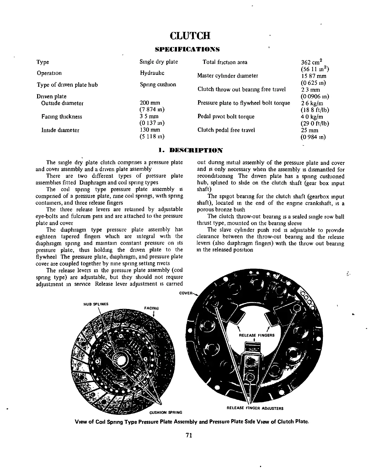 Datsun 1600 - CLUTCH SPECIFICATIONS AND COMPONENTS