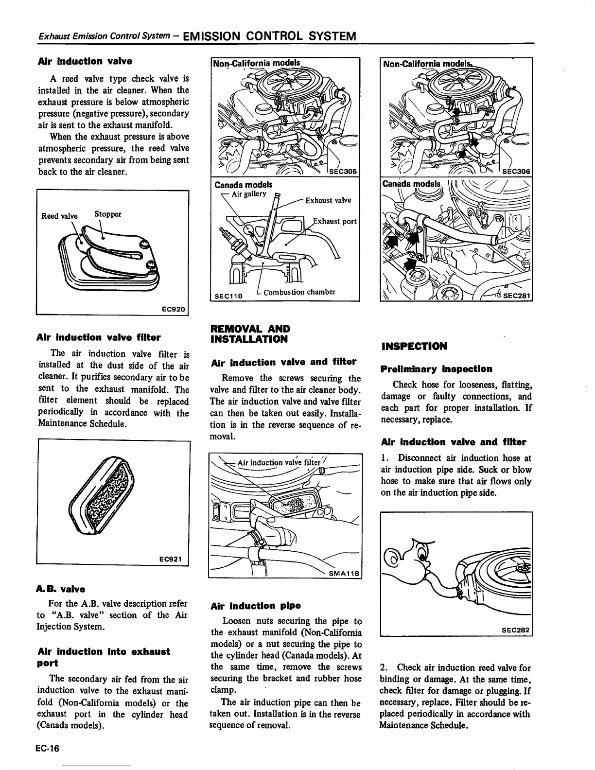 Datsun 1980 310 - Air Induction Valve; Air Induction Valve Filter; Air Induction into Exhaust Port; Air Induction Pipe
