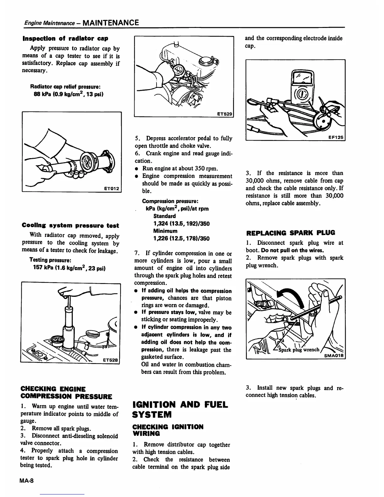 Datsun 1980 310 - Ignition and Fuel System; Checking Engine Compression Pressure; Checking Ignition Wiring; Replacing Spark Plug