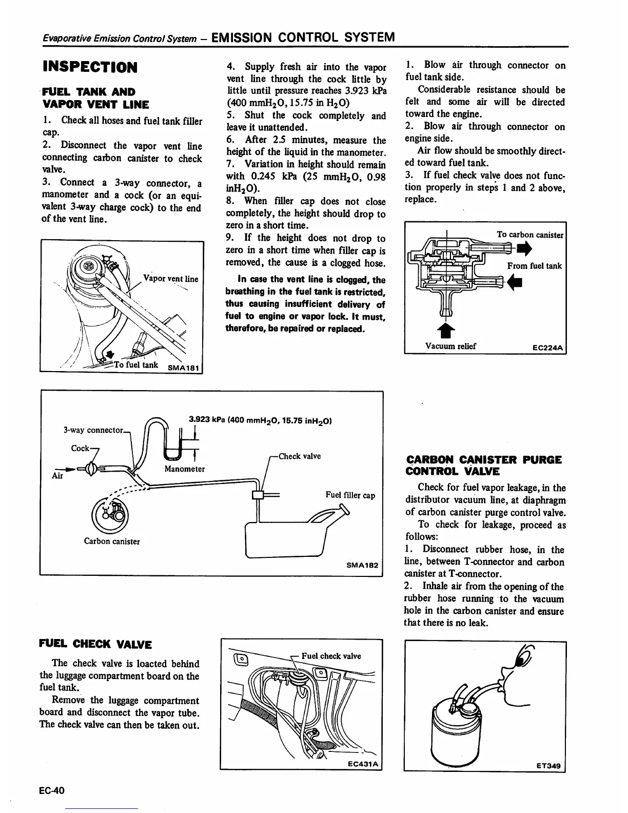 Datsun 1980 310 - Fuel Tank and Vapor Vent Line; Fuel Check Valve; Carbon Canister Purge Control Valve