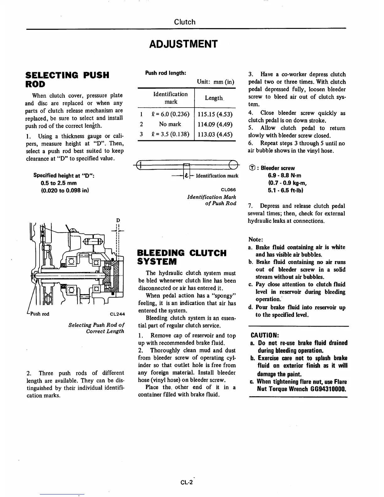 Datsun 1980 310 - Selecting Push Rod; Bleeding Clutch System