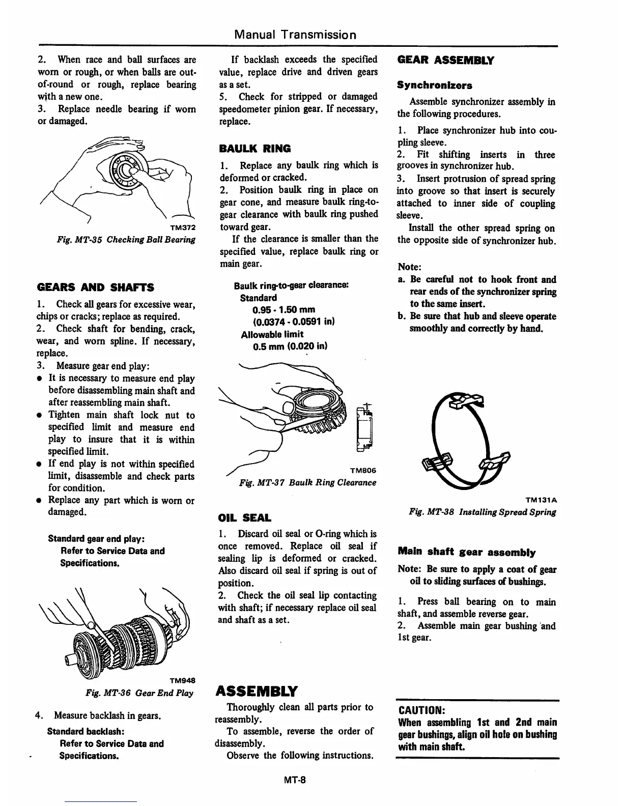 Datsun 1980 310 - Gears and Shafts; Baulk Ring; Gear Assembly; Oil Seal