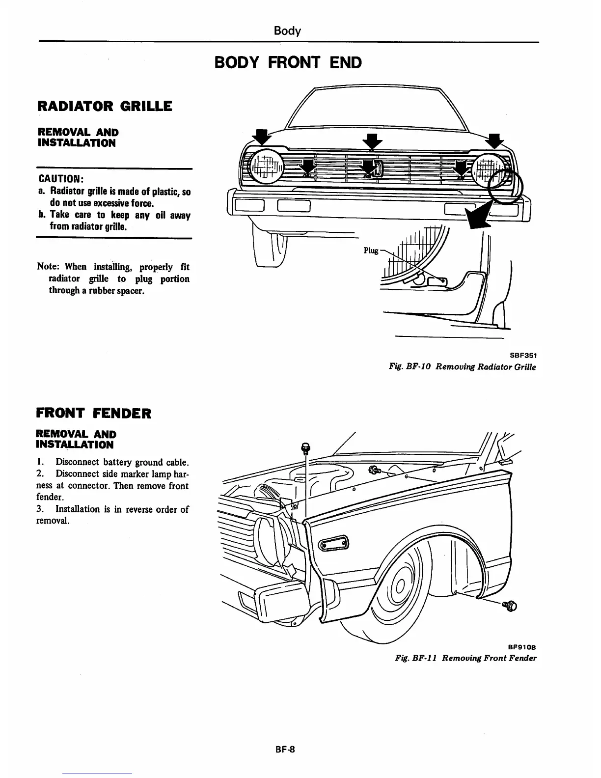 Datsun 1980 310 - Body Front End; Radiator Grille; Front Fender