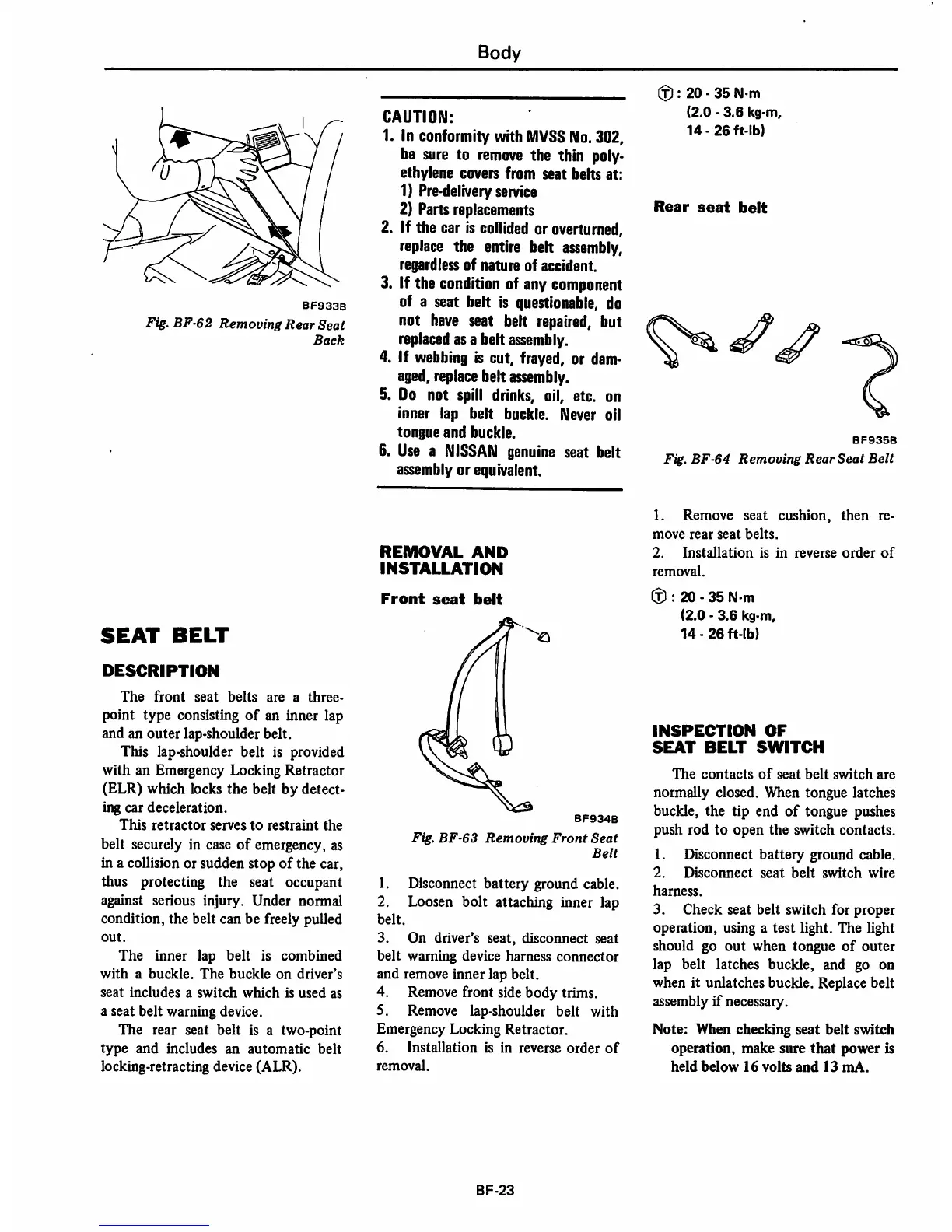 Datsun 1980 310 - Seat Belt; Rear Sent Belt; Inspection of Seat Belt Switch