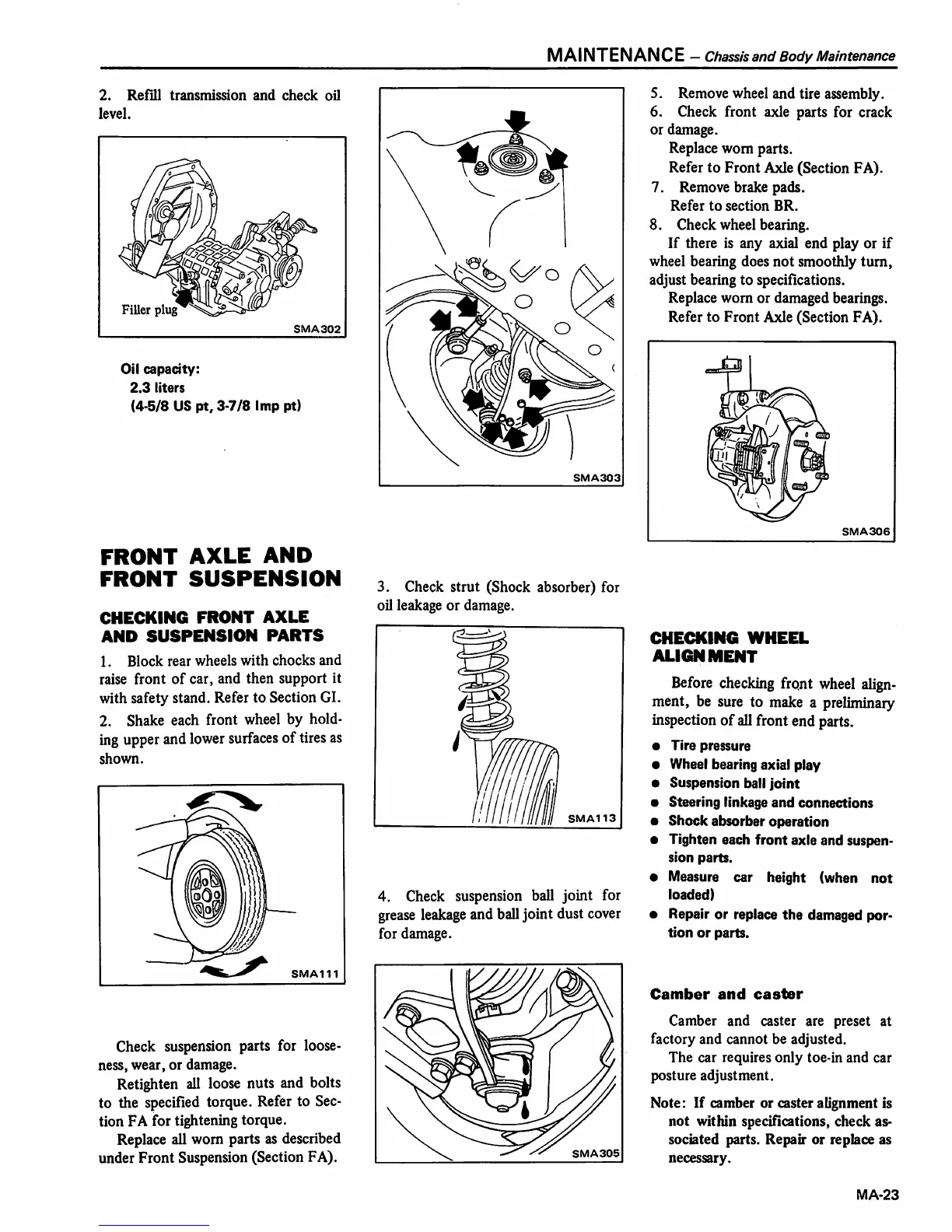 Datsun 1980 310 - Front Axle and Front Suspension; Checking Front Axle and Suspension Parts; Checking Wheel Alignment; Camber and Caster