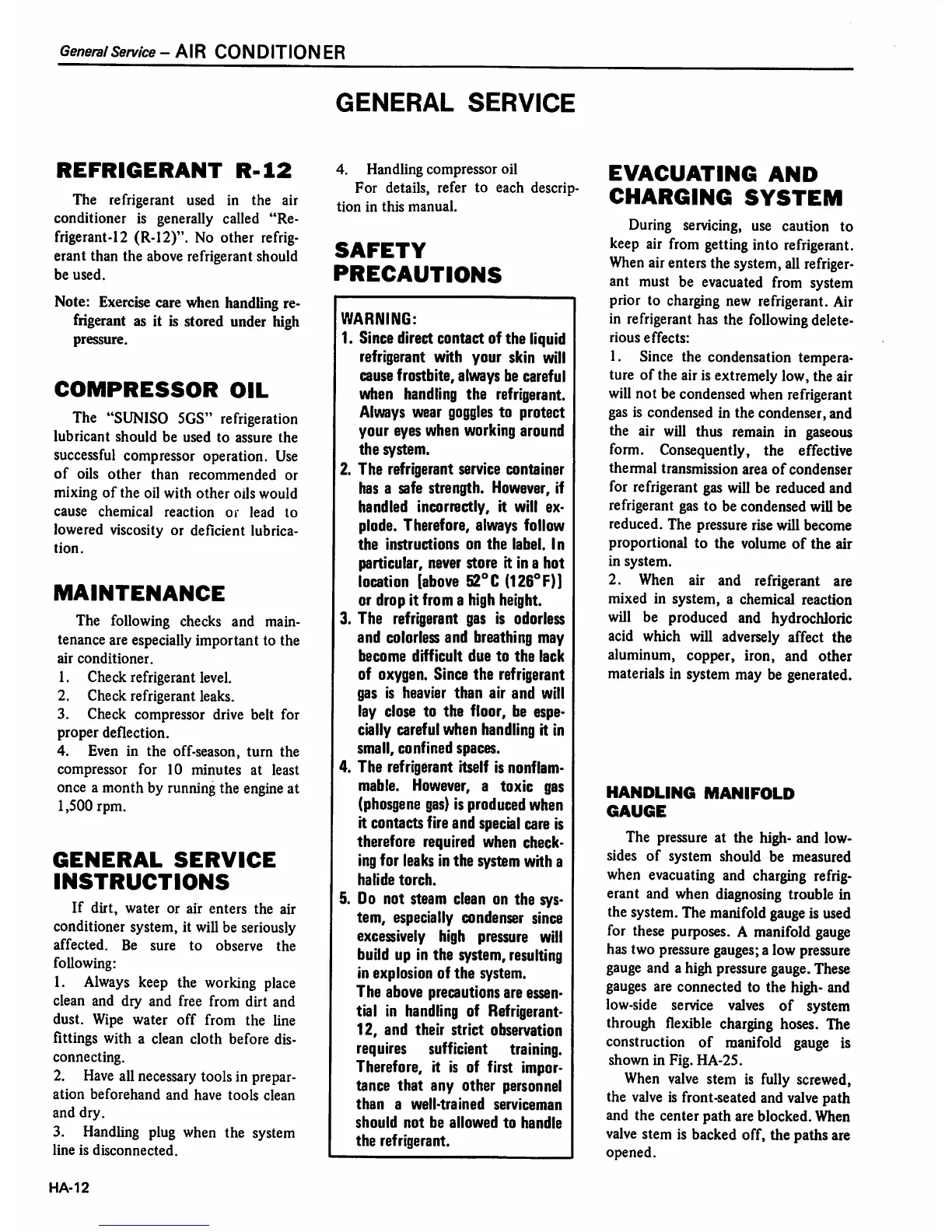Datsun 1980 310 - General Service; Refrigerant R-12; Compressor Oil; Safety Precautions